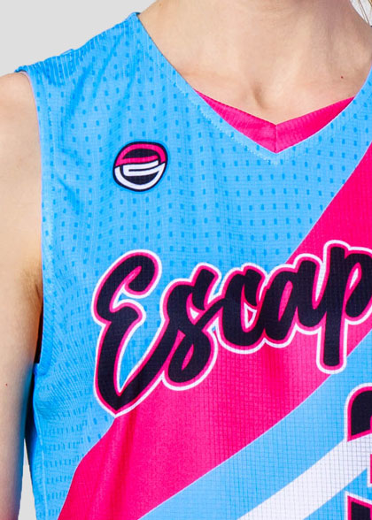 EscaperОписание: Женская односторонняя баскетбольная майка полуприлегающего силуэта. Без боковых вставок. V-образная горловина с фигурной вставкой по центру. Сублимация изделия обеспечивает возможность выбрать любые цвета и дизайн которые не выцветут за любое количество стирок. Полная сублимация — любой цвет и дизайн (уже входит в стоимость).