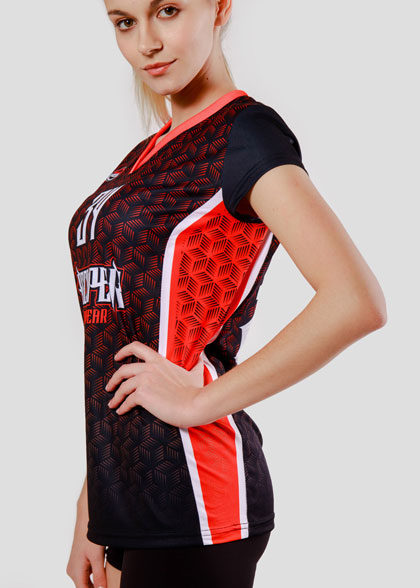 EscaperОписание: Женская волейбольная ФУТБОЛКА свободного силуэта. Фигурные вставки из перфорированной сетки по бокам. Фигурная горловина из рибаны. Втачные рукава без манжеты. Сублимация изделия обеспечивает возможность выбрать любые цвета и дизайн которые не выцветут за любое количество стирок. Полная сублимация — любой цвет и дизайн (уже входит в стоимость).