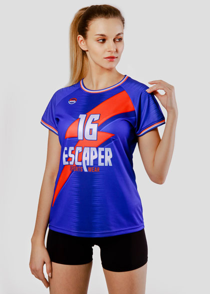 EscaperОписание: Женская волейбольная футболка полуприлегающего силуэта. Круглая горловина из эластичной рибаны. Втачной рукав без манжеты. Сублимация изделия обеспечивает возможность выбрать любые цвета и дизайн которые не выцветут за любое количество стирок. Полная сублимация — любой цвет и дизайн (уже входит в стоимость).